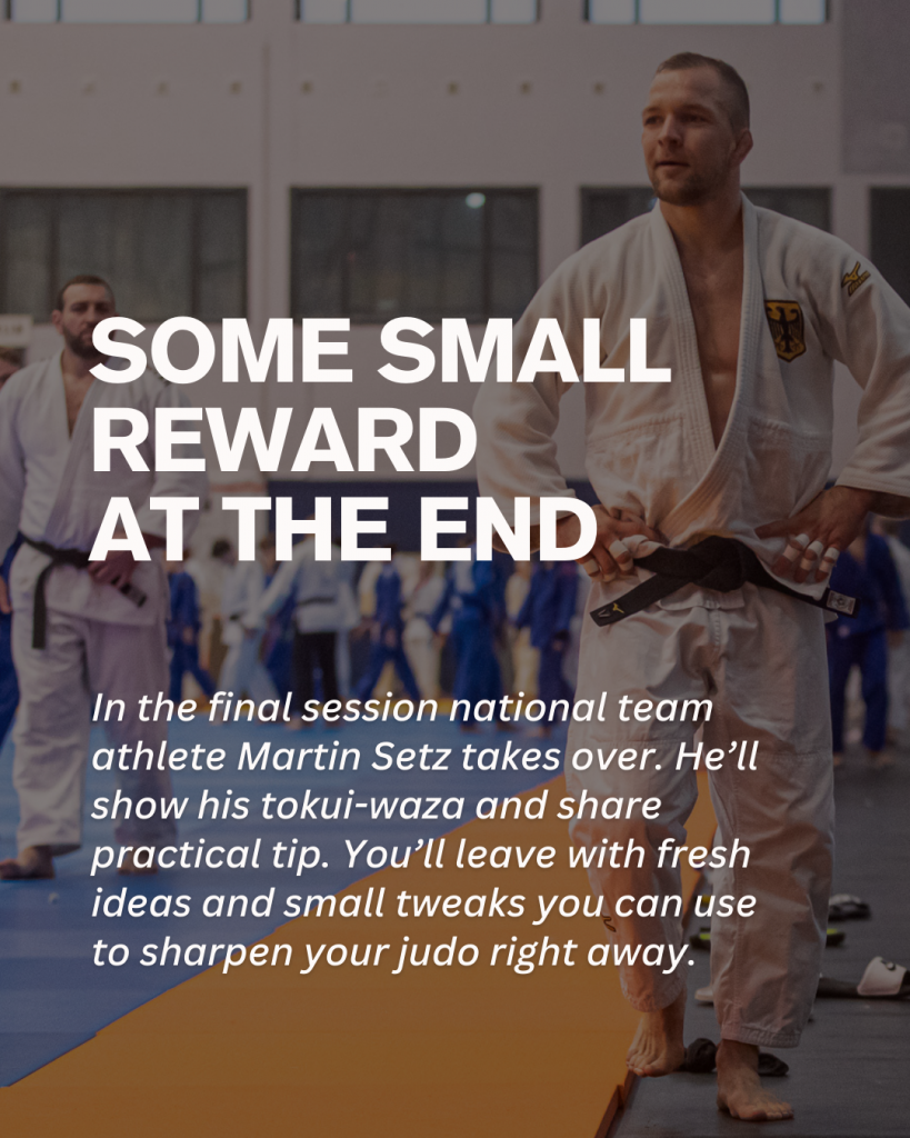 We recommend participation for judokas aged 14 and older (born in 2011 or earlier). However, we also accept registrations for judokas born in 2011, knowing that teenagers develop differently at this age. Young participants have to be ready to train with 15- oder 16-year-olds both physically and in judo skills. Please note, the minimum weight class is up to 40 kg.